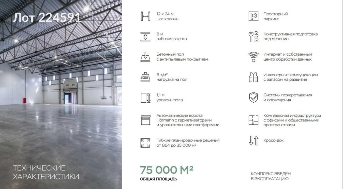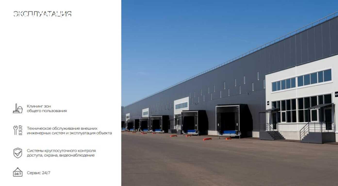 Лот № 224591 Предлагаются к продаже новые складские помещения, оборудованные системой круглосуточного контроля доступа, обеспечивающей режим работы 24/7. Комплекс включает удобные подъездные пути и рампы для погрузочно-разгрузочных операций. Также предусмотрена возможность аренды офисных площадей, что позволяет оптимизировать использование пространства.